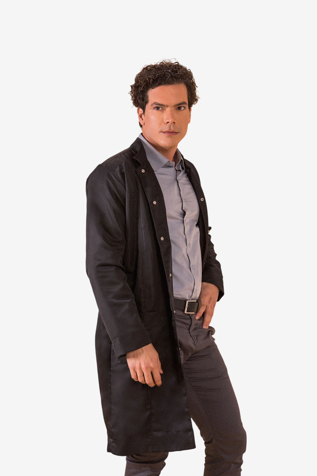 Jaleco Masculino Barcelona Black: para um toque de modernidade, seu jaleco preferido, agora colorido. Tem corte reto e um estilo clássico. Possui gola padre e linhas de costuras verticais ao longo dele, o que alonga a silhueta e proporciona um excelente caimento.